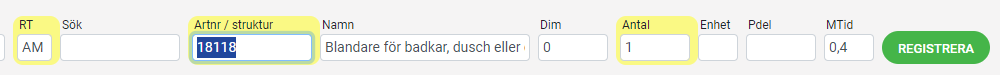 Till hjälp har man olika radtyper(RT) när man registrerar: