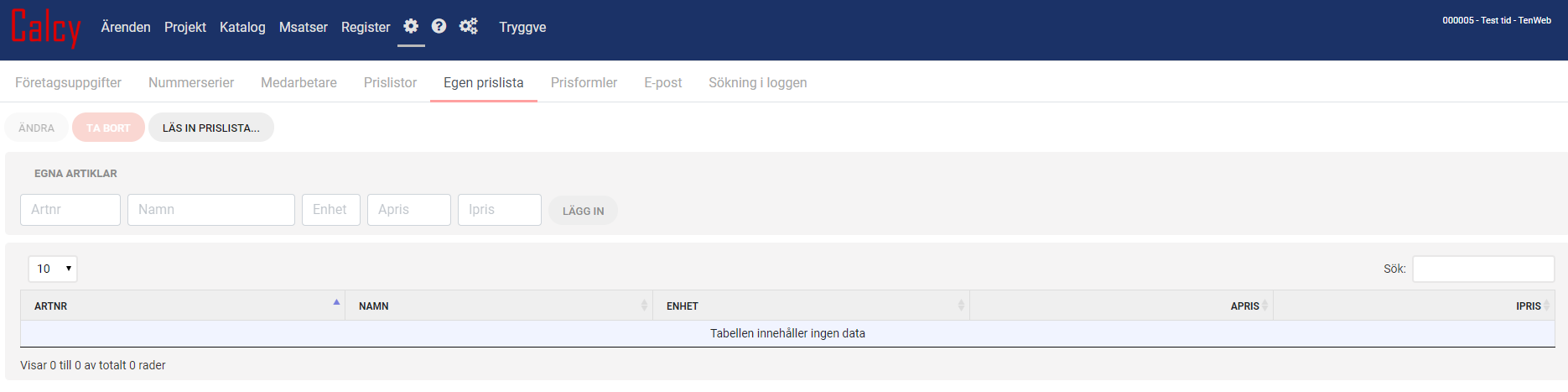 Egen prislista