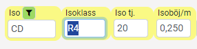 Genom att ange Typ av isolering och Isoklass räknas isolertjockleken fram.