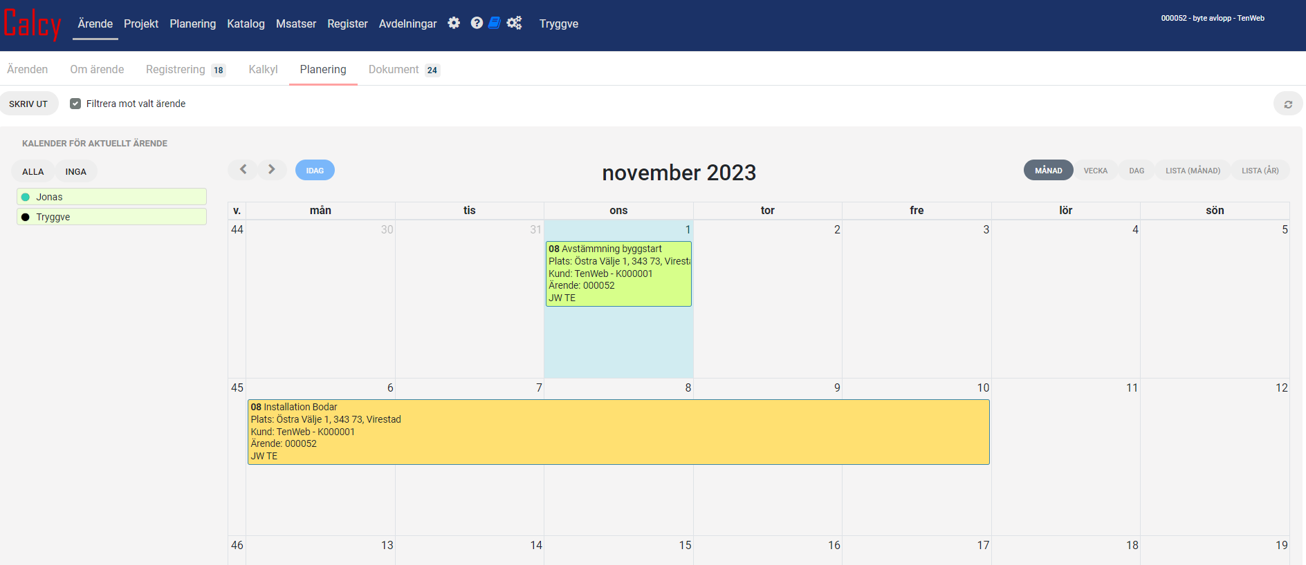 Calcy arbetar med Ärenden.