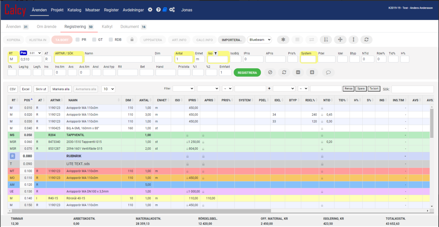 Calcy kan använda antingen Normtider eller vårt unika Montagetid där både rör, rördelar, ventiler etc. är tidsatta.