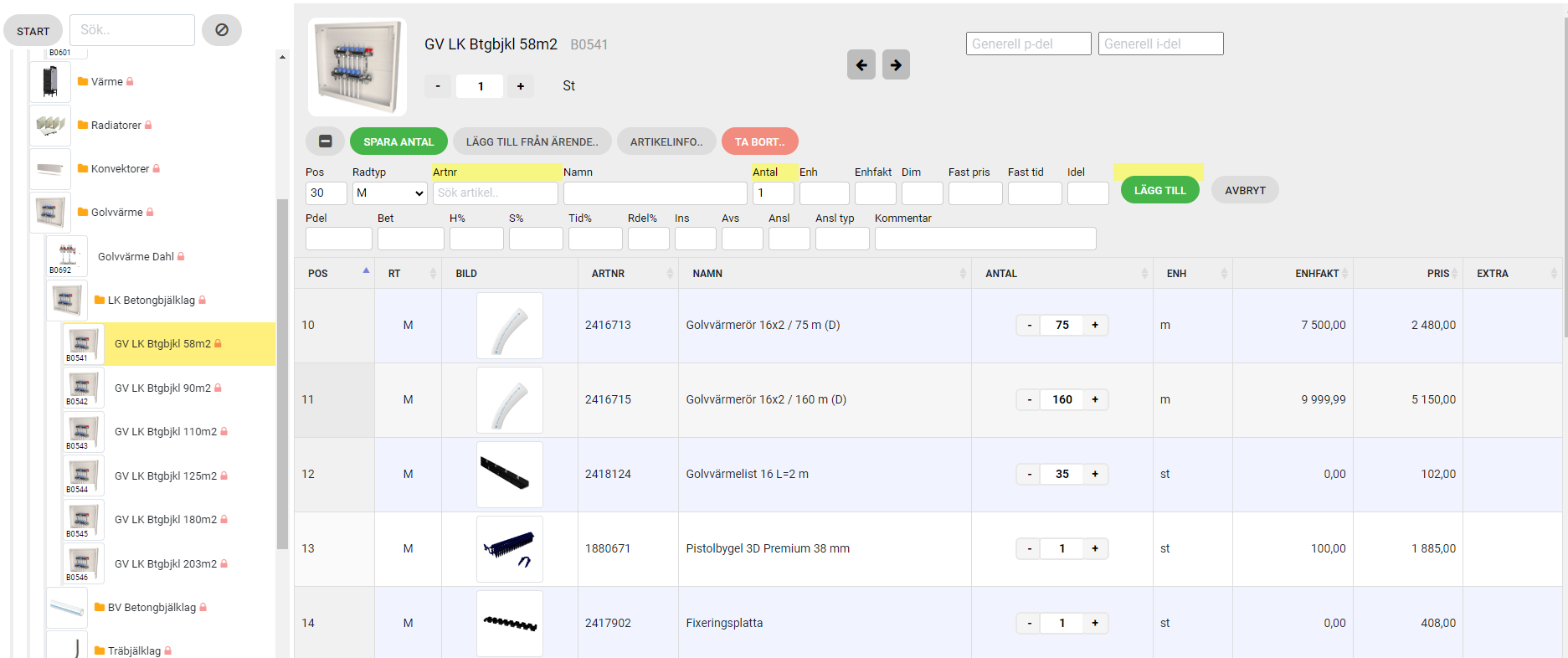Vi har skapat 200 olika MaterialSatser som ska förenkla kalkylskedet.